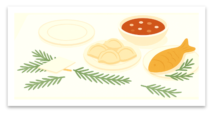 One of the most cherished customs is the sharing of the opłatek, a thin wafer, which family members break and exchange along with words of blessing. Many tables are decorated with hay beneath the tablecloth, reminding us of Christ’s humble birth in a manger, and an empty place setting is left for an unexpected guest, symbolizing hospitality and remembrance of loved ones. These traditions beautifully express themes of peace, unity, and generosity.
