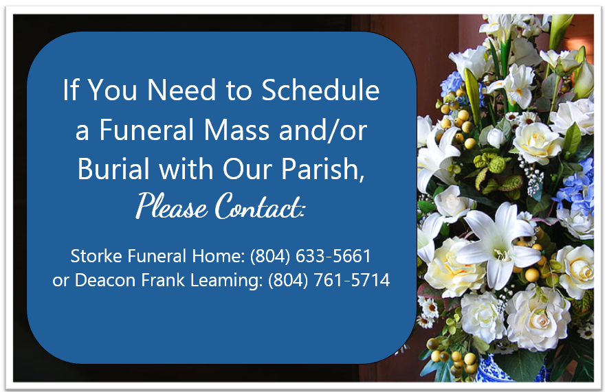 Please contact a member of our office staff at (804) 448-9064 if you are able to assist with funeral receptions.